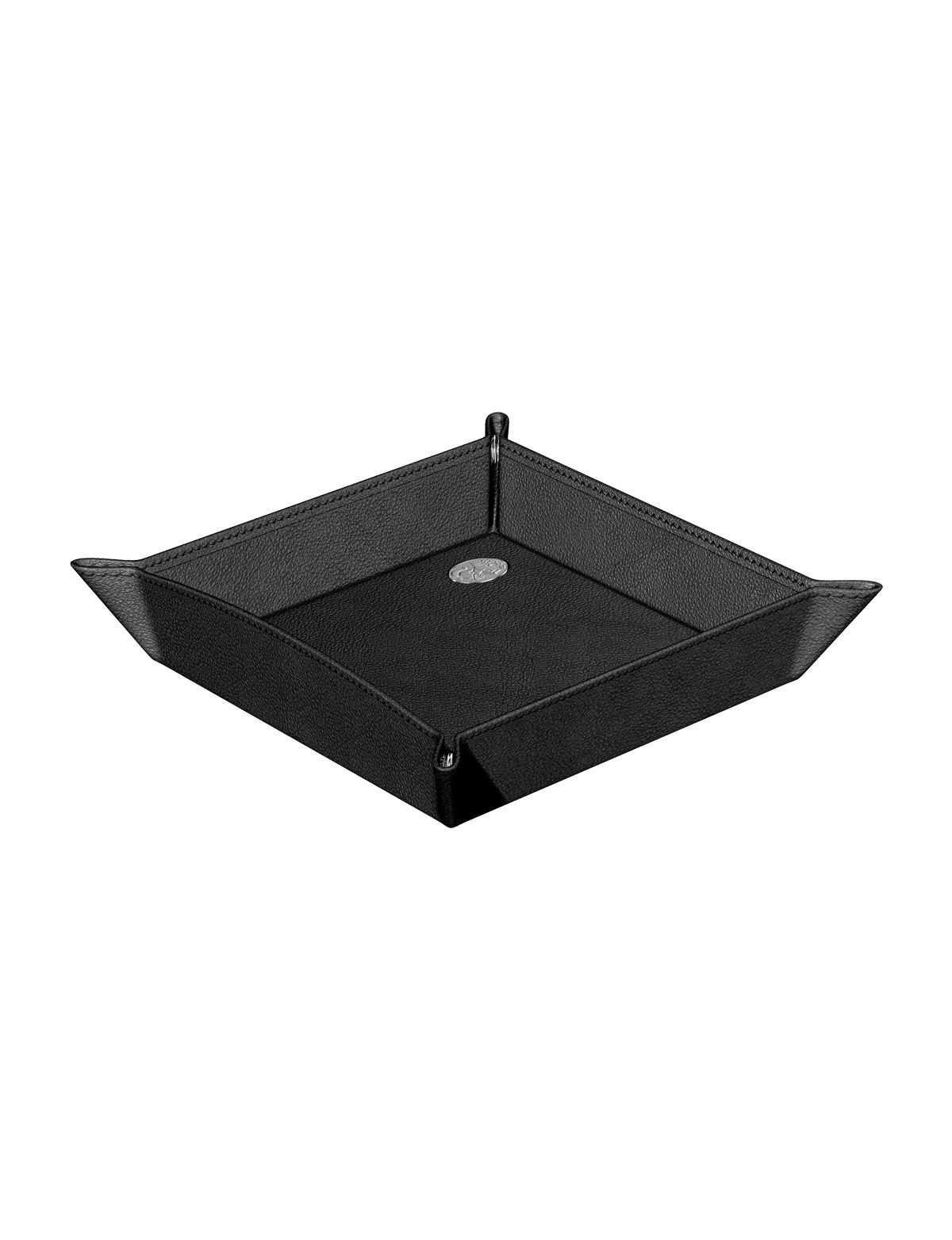 Hakiki siyah deriden el yapımı kare vale tepsisi M-716. El Casco metal amblemli.