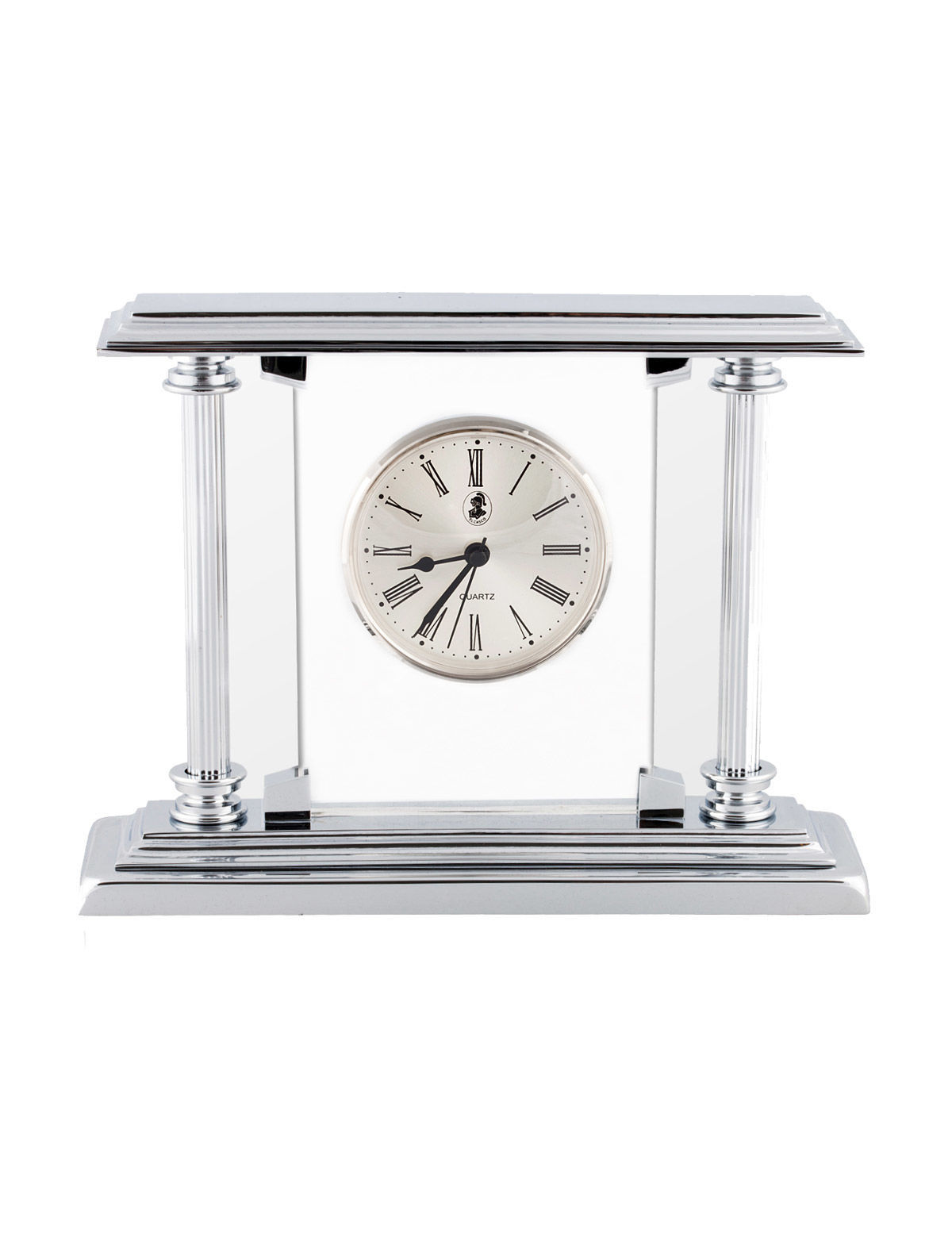 Parlak krom kaplamalı masa saati.