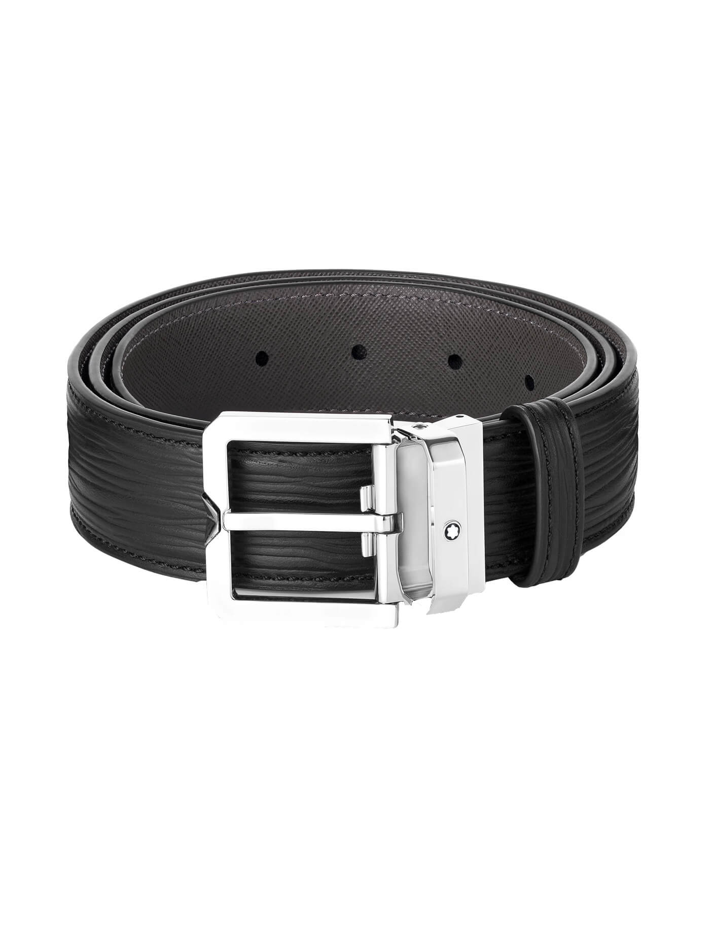 Montblanc At Nalı Toka Baskılı Siyah/Düz Siyah 35 mm Çift Yönlü Deri Kemer 198634
